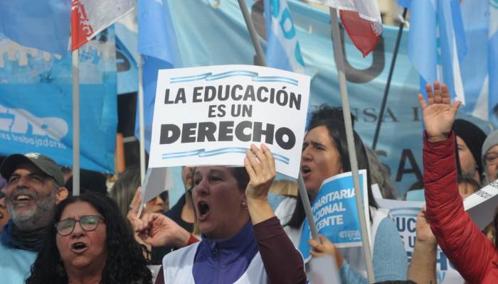 Asimismo, el titular de UEPC sostuvo: “Se está cercenando el derecho a huelga que es una de las intenciones de este proyecto, y la otra cuestión es que todos sabemos que los servicios se pagan. Y a la larga el objetivo va a ser que se privatice el sistema educativo y que si querés que tus hijos tengan educación la vas a tener que pagar porque eso es un servicio”.