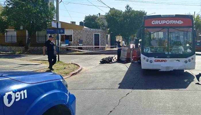 La Policía de Córdoba informó que esta tarde en la esquina de Arrecifes y Duarte Quirós de barrio Las Palmas, personal de esa fuerza entrevistan a un hombre mayor de edad, chofer de colectivo de la empresa FAM, Línea número 72, quien manifiesta que por causas a establecer colisiona con una motocicleta Yamaha Fz, color negro, conducida por un masculino mayor de edad, el que se encuentra sin signos vitales. Cabe aclarar que en el lugar se estuvo trabajando el servicio de emergencia 107.