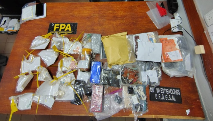 Más de 20 teléfonos celulares, plaquetas de cargadores de celulares, cables USB, documentaciones y diversas drogas (marihuana, cocaína y pastillas).