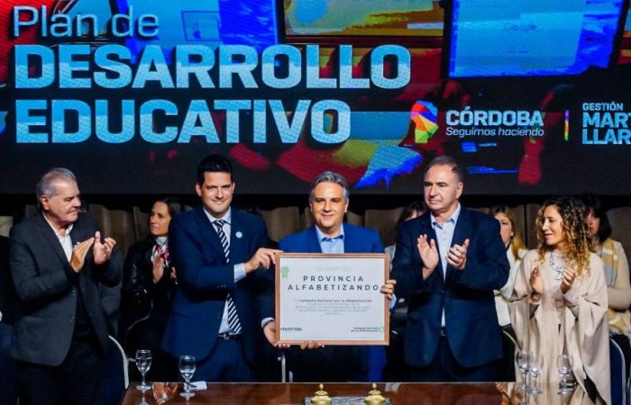 El gobernador Martín Llaryora encabezó el acto donde la organización “Argentinos por la Educación” otorgó un reconocimiento a la Provincia por la iniciativa Compromiso Alfabetizador que se implementa en las escuelas cordobesas.