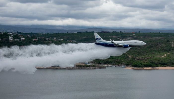 Como parte de esta experiencia, llegó a nuestra provincia un Boeing 737 Fireliner (LV-KJS), el avión de combate de incendios más grande de Latinoamérica, con capacidad para transportar hasta 15.000 litros de agua o retardante.