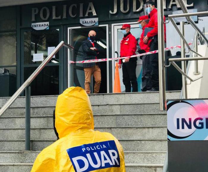 Por solicitud del Tribunal Superior de Justicia (TSJ) y el Ministerio Público Fiscal (MPF), la Dirección de Unidades de Alto Riesgo de la Policía de Córdoba (DUAR) trabajó en la desinfección de Instalaciones Policía Judicial, en calle Duarte Quirós y Corro, y de la sede de Tribunales III (Fuero Laboral) en calle Balcarse 419, ambos en la ciudad de Córdoba. En el primer inmueble se desinfectó desde la Planta Baja al Piso 13, en todos los despachos y lugares comunes. También en Tribunales III, desde planta baja al tercer piso, con idéntico criterio. Los trabajos se realizaron con la participación de los técnicos y funcionarios de la DUAR y el Fiscal general Adjunto, Héctor David.