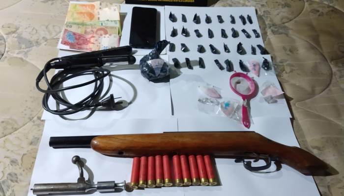 En el punto de venta cerrado, con la destacable labor de los investigadores y la División K-9, se logró el secuestro de 750 dosis de cocaína, dinero, una escopeta recortada calibre 28, diez cartuchos cal. 28, una motocicleta y diversos elementos de fraccionamiento.