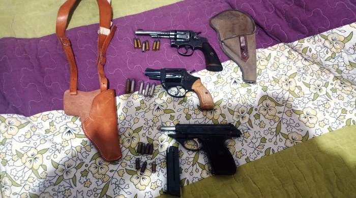 De acuerdo a lo informado por la Dirección Prensa de la Policía de Córdoba, en la ciudad de Villa Dolores, en el Departamento San Javier, en horas de la mañana, en relación a un ilícito que se investiga, personal policial efectuó un allanamiento en barrio San Martín. El operativo culminó con el secuestro de un revólver calibre 38, una pistola calibre 7.65 y un revólver calibre 32 largo, además de varios cartuchos. Lo incautado fue trasladado a sede policial y puesto a disposición de la justicia.