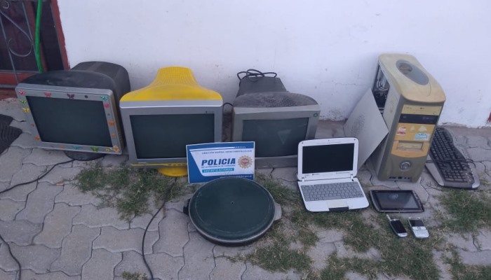 Esta tarde en Achiras a la hora 17:30 tras una serie de allanamientos realizados en domicilios de la localidad por personal de esa Comisaria, siguiendo directivas del magistrado de turno, se procedió al secuestro de una tablet, una netbook, dos teléfonos móviles, teclado, tres monitores, un CPU y un rollo de caño negro de 100 metros de largo, entre otros elementos. Además, en una de las viviendas, se secuestraron estupefacientes y plantas de cannabis sativa, por lo que solicitó la presencia de la Fuerza Policial Antinarcotráfico (FPA).-