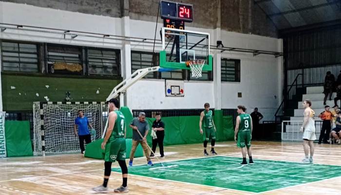 A falta de 8.26 para que termine el primer cuarto con el juego 2 a 0 en favor de Barrio Parque debió pararse el partido por segunda vez, luego del inicio y una suspensión previa donde se intentó solucionar el problema pero no se pudo.