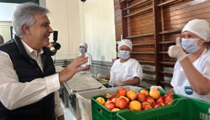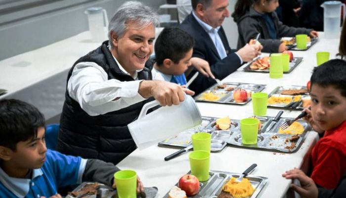 Durante la visita, el gobernador recorrió las instalaciones del comedor junto a autoridades provinciales y miembros de la comunidad educativa, donde se presentó formalmente el espacio a madres, padres y trabajadores. Además, compartió el almuerzo con alumnos y alumnas del nivel primario.