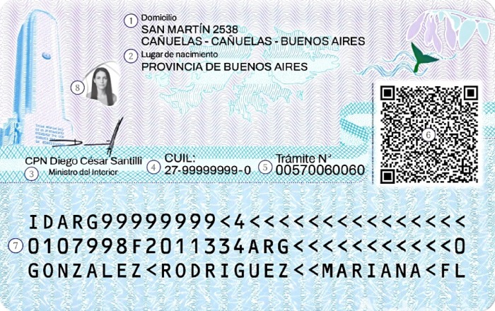 Además, el documento incorpora un Número CAN (Card Access Number), un código de seis dígitos ubicado en el extremo inferior derecho, debajo de la foto fantasma, diseñado para la lectura segura mediante tecnología NFC. Este número se suma a otras medidas de seguridad, como el código QR y el propio chip electrónico. Cabe señalar que el CAN se incorpora en los DNI emitidos a partir de la actualización de los 14 años.