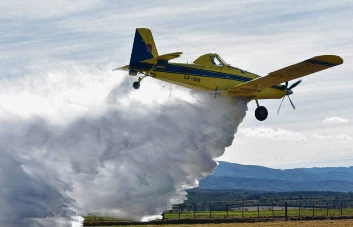 El operativo aéreo cuenta con cinco aviones hidrantes, tres pertenecientes a la Dirección Provincial de Aeronáutica y dos del Plan Nacional de Manejo del Fuego.