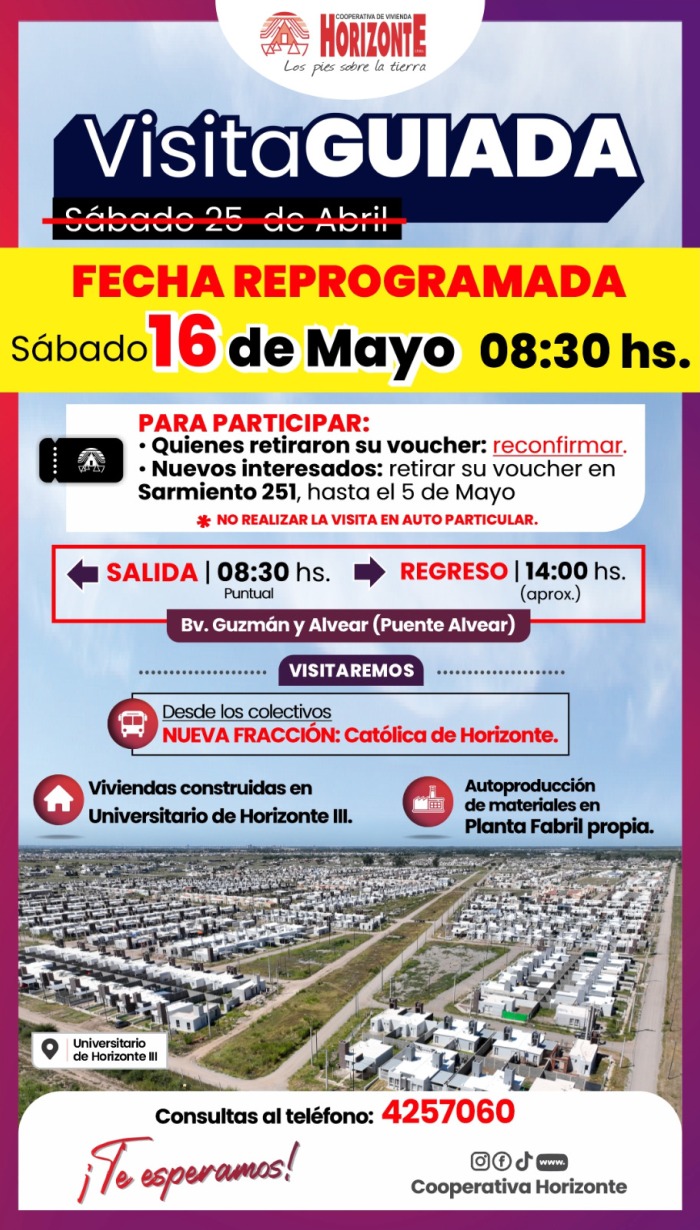 «El cupo es limitado. ¡Los esperamos! Horizonte, los pies sobre la tierra», expresaron desde la Cooperativa.