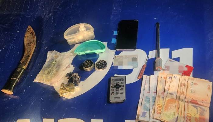 En horas de la mañana, un hombre que registraba orden de detención, terminó detenido en barrio Bajada de Piedra, luego de evadir un control policial en la zona y escapar en su vehículo Peugeot 306. El procedimiento culminó en calles Germania y Ramón Bautista Mestre, donde el individuo fue interceptado luego de colisionar con un móvil policial e intentar continuar la fuga pie. Asimismo, se procedió al secuestro del vehículo mencionado, un cuchillo tipo faca, un inhibidor de alarmas, dinero y varias dosis de marihuana y cocaína, entre otros elementos. Finalmente, el detenido fue puesto a disposición del magistrado interviniente junto a lo incautado.