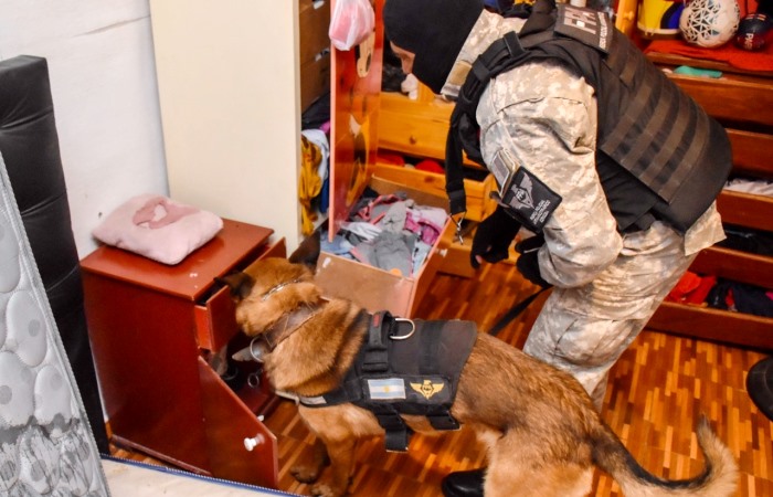 El domicilio allanado se ubica en calle Ferrocarril sin número de barrio Los Eucaliptus. Allí Dotaciones de la Fuerza junto a canes detectores de narcóticos de la División K-9, lograron el secuestro de aproximadamente 140 dosis de cocaína, marihuana, dinero en efectivo y elementos que estarían relacionados al fraccionamiento y venta de sustancias ilícitas.