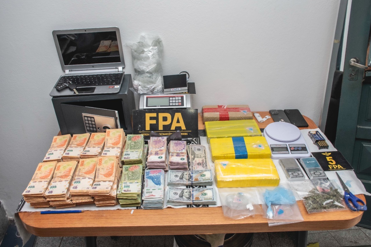 En los puntos de venta desbaratados, con destacada labor de los canes detectores de narcóticos, se logró la incautación de 22.495 dosis de cocaína de alta pureza (dividida en panes y envoltorios), dinero ($5.497.040 y 20.160 dólares), 24 cartuchos, una balanza digital, una máquina para contar dinero y diferentes elementos relacionados a la causa.