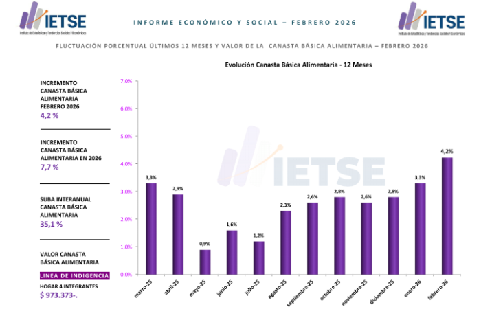 Desde el IETSE estimaron para Febrero 2026, la línea de pobreza para una familia tipo, en $ 1.770.383-. mientras que la línea de indigencia se situó en $ 973.373-., ilustrando el costo de acceso a bienes y servicios básicos y los persistentes desafíos estructurales.