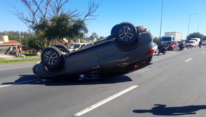 El camión era conducido por un hombre de 36 años; la camioneta, por un hombre mayor de edad que viajaba acompañado por otras dos personas; mientras que el rodado menor era guiado por una mujer mayor de edad, quien iba junto a su hija, también mayor. Como consecuencia del impacto, la Toyota SW4 protagonizó un vuelco y quedó apoyada sobre su techo en la banquina.