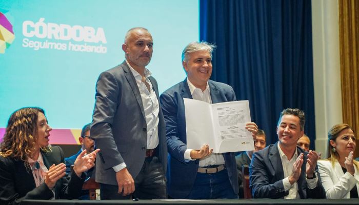 El gobernador Martín Llaryora firmó un convenio con el intendente Mauro Daniele por 200 millones de pesos para las obras de pavimentación de calle Avellaneda frente a Escuela Proa y Parque de la Familia, cordón cuneta en barrio Raúl Alfonsín, pavimento en barrios José María Paz, Alta Córdoba e Hipódromo, y gas natural en Barrios Raúl Alfonsín, Peretti y Caldara.