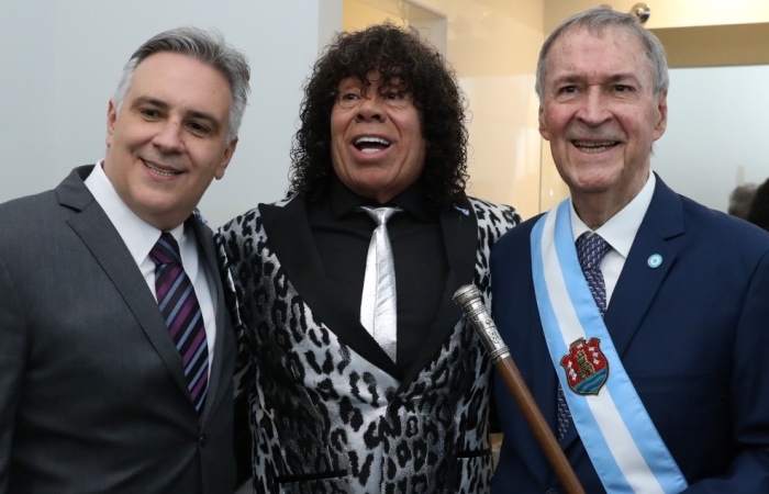 En su llegada al Teatro San Martín, el gobernador fue recibido por la Guardia de Honor de los Federales de Bustos; minutos después, se entonaron las estrofas del himno nacional argentino interpretado por Juan Taleb y Martín Pampiglione.