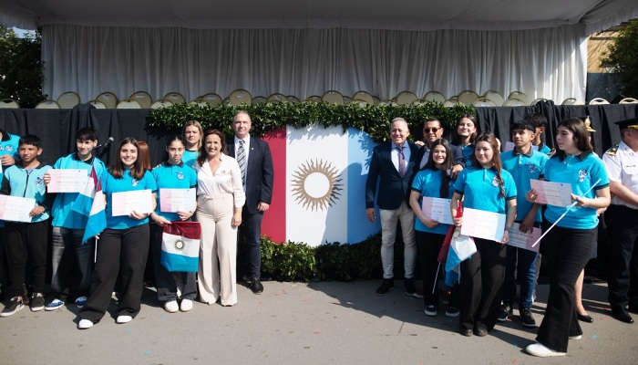 Luego, tomó el juramento a los alumnos de los tres niveles, primario, secundario y superior, de los siguientes establecimientos educativos técnicos: IPEAYM N°224 “Leopoldo Lugones”, PROA, Escuela José de San Martín, CENI “Francisco Benchetrit”, CENI “José de San Martín”, ENS “Maestros Fundadores” Anexo. También a instituciones de modalidad especial, como Nueva Escuela Especial; y de la modalidad de Jóvenes y Adultos, a CENMA 242, tanto en su modalidad presencial como a distancia.