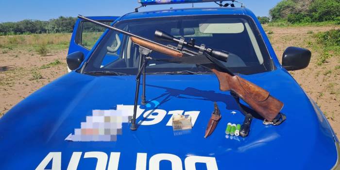 La Dirección de Relaciones Institucionales de la Policía de Córdoba informó que en la víspera, efectivos de la fuerza procedieron a la aprehensión de un hombre de 26 años junto al secuestro de una carabina, calibre 22, y un arma blanca entre otros elementos. Este individuo, momentos antes habría estado cazando sin autorización en un campo de propiedad privada. Posteriormente, el aprehendido y demás fueron puestos a disposición del magistrado interviniente.