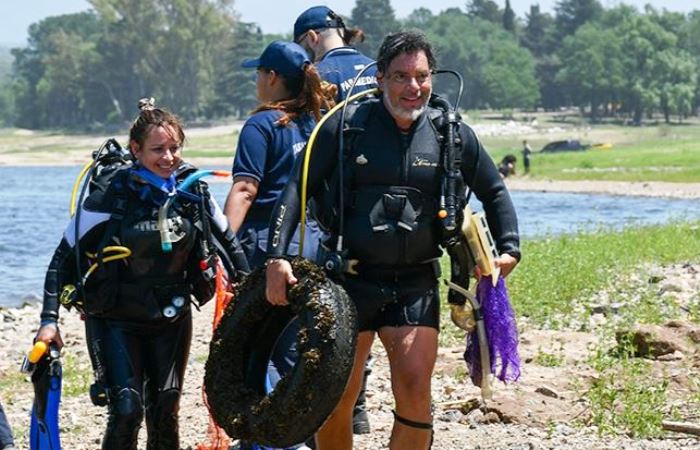 Para seguir avanzando en el saneamiento de los espejos de agua de nuestra provincia, el Ministerio de Ambiente y Economía Circular llevó a cabo una jornada de limpieza en el Dique Los Molinos, junto a la agrupación Fondo Limpio y un grupo de buzos especializados.