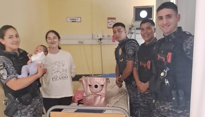 Al arribar al lugar, los efectivos constataron la situación y actuaron de inmediato, trasladando a la niña, de menos de un mes de vida, junto a su madre de 22 años, hacia el Hospital Pasteur. Durante el trayecto, los uniformados le practicaron maniobras de primeros auxilios que permitieron reanimarla y lograr que recuperara la respiración.