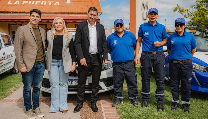 En La Puerta, donde se entregó un automóvil para fortalecer la Guardia Local, estuvieron presentes el legislador departamental Juan José Blangino; la intendenta Lorena Peralta; la jefa comunal de Atahona, Carmen Aguirre; el intendente de Villa Fontana, Víctor Biagioli, y autoridades policiales.