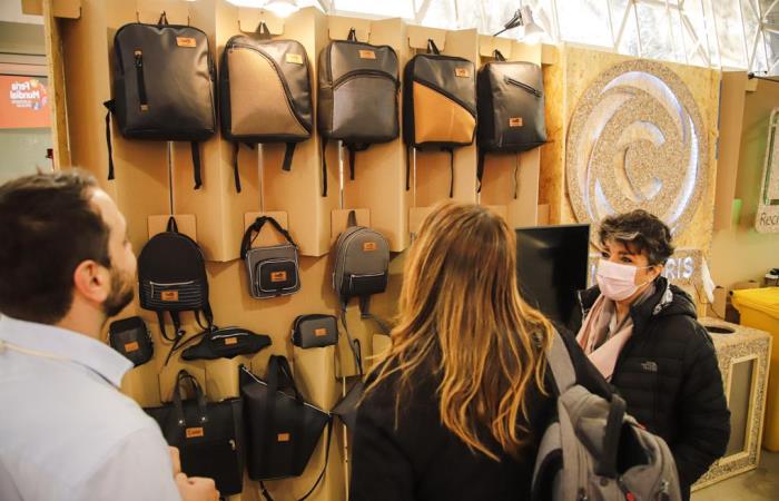 La gran oferta con más de 40 stands incluye a empresas que brindan soluciones de energía solar, porta lámparas de cartón, muebles de madera plástica, bolsos y prendas de vestir realizadas con retazos, obras de arte realizadas con chatarra, pisos plásticos y mucho más.