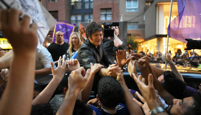 Acompañado por su hermana Karina, Javier Milei, de rigurosa campera de cuero negra, en una tarde con más de 32º de temperatura, encabezó una caravana por el centro de la ciudad, sobre la parte trasera de una camioneta, al igual que lo había hecho en la campaña de las elecciones legislativas de la provincia de Buenos Aires.
