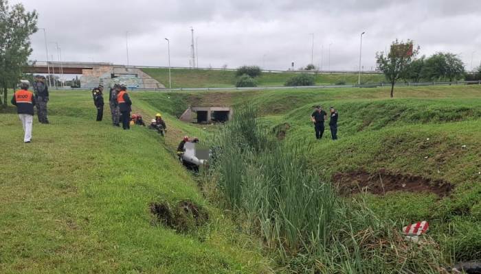 Como consecuencia, el rodado habría despistado, impactando contra el guardarraíl y posteriormente volcando dentro de un desagüe pluvial, quedando con las ruedas hacia arriba.