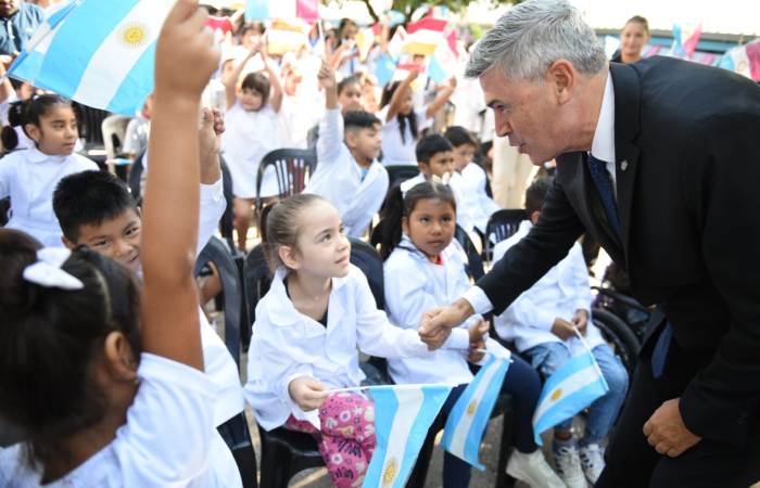 Del acto participaron además el viceintendente Javier Pretto; la secretaria de Educación, Alicia La Terza; la directora de la Escuela Azor Grimaut, Natalia Villegas; el ministro de Vinculación y Gestión Institucional, Miguel Siciliano; la secretaria General de Ambiente, Economía Circular y Biociudadanía, Victoria Flores; el padre Mariano Oberlin, entre otras autoridades. También actuó la Banda Boquerón del Regimiento de Paracaidistas 2 “General Balcarce”.
