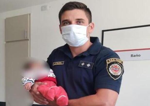 Personal médico reconoció que las maniobras del policía le salvaron la vida a la recién nacida. Aparentemente, la nena se habría broncoaspirado mientras era amamantada. Ya se encuentra fuera de peligro. El nombre del héroe es Oficial Facundo Leyría.