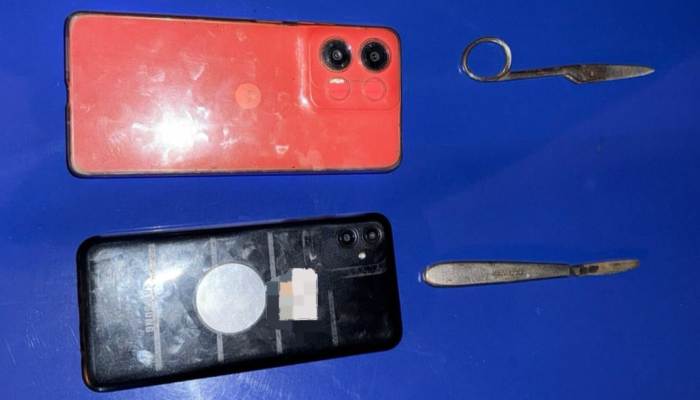 Al momento del control, los jóvenes reaccionaron de manera hostil, por lo que se procedió a su aprehensión. Durante el palpado preventivo, se les incautaron dos armas blancas tipo puntas metálicas y dos teléfonos celulares, los cuales habrían sido sustraídos días atrás.
