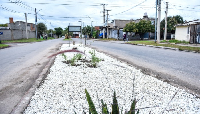 También en el cantero central, se colocaron piedras blancas, se plantó un árbol joven en remplazo de un ejemplar dañado, al igual que arbustos. Un dato destacable: un grupo de vecinos aportó sus propias plantas para embellecer el sector.
