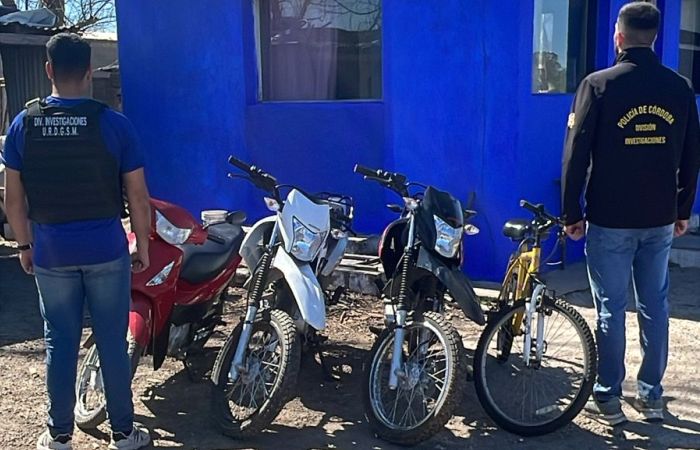 En las últimas horas, personal policial diligenció varias órdenes de allanamientos en viviendas de barrio San Justo y barrio San Juan Bautista de Villa María, Departamento General San Martín, donde se detuvo a un hombre de 19 años y puso a disposición de la justicia a dos menores de 15 y 16 años, todos sindicados como supuestos autores del delito de robo. Además, se procedió al secuestro de tres motocicletas (marcas Honda XR y Honda Biz), también una bicicleta, teléfonos celulares y prendas de vestir. Estos procedimientos están relacionados a una investigación minuciosa llevada a cabo con el fin de desbaratar una banda dedicada a forzar portones (cocheras y garajes) de las que sustraían motocicletas. La investigación se encuentra a cargo de la Fiscalía de Instrucción del 2° turno, Dra. Juliana Companys.