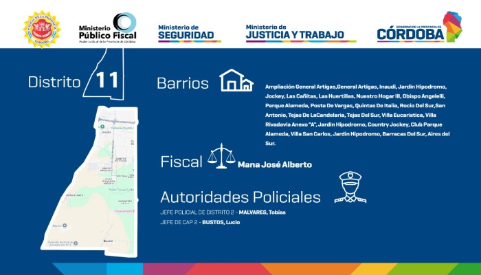 En el nuevo Distrito 11 estarán comprendidos los barrios Ampliación General Artigas, General Artigas, Inaudi, Jardín Hipódromo, Jockey, Las Cañitas, Las Huertillas, Nuestro Hogar III, Obispo Angelelli, Parque Alameda, Posta De Vargas, Quintas De Italia, Rocío Del Sur, San Antonio, Tejas De La Candelaria, Tejas Del Sur, Villa Eucarística, Villa Rivadavia Anexo «A», Jardín Hipódromo, Country Jockey Club, Parque Alameda, Villa San Carlos, Jardín Hipódromo, Barracas Del Sur y Aires Del Sur.