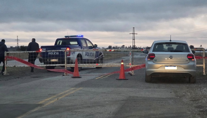 Esta madrugada, sobre esta ruta provincial del Departamento Marcos Juárez, en el sudeste de la provincia de Córdoba, un vehículo proveniente de la localidad de San José de la Esquina, provincia de Santa Fe, quedó en el medio de la ruta y rápidamente fue tapado por el agua que cruzaba la calzada.