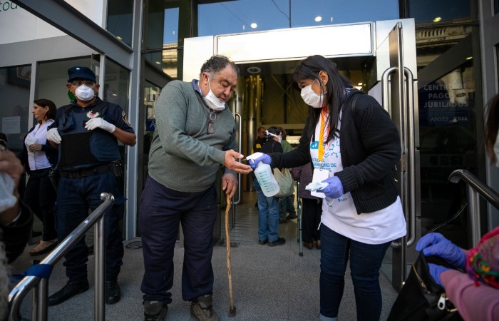 Son más de 400 voluntarios que cumplen tareas de prevención, asistencia y cuidado de los adultos mayores que concurren a las sucursales para su cobro, en el marco del voluntariado espontáneo convocado por el Gobierno de la Provincia de Córdoba. Su función es fundamentalmente la de preservar que se mantenga la distancia recomendada entre las personas en la fila, ofrecer hidratación, brindar información y estar atentos ante cualquier eventualidad o circunstancia de salud que pudiera darse durante la espera. También se entregan barbijos a adultos mayores vulnerables, y se reparten alrededor de 1500 litros de agua diarios.